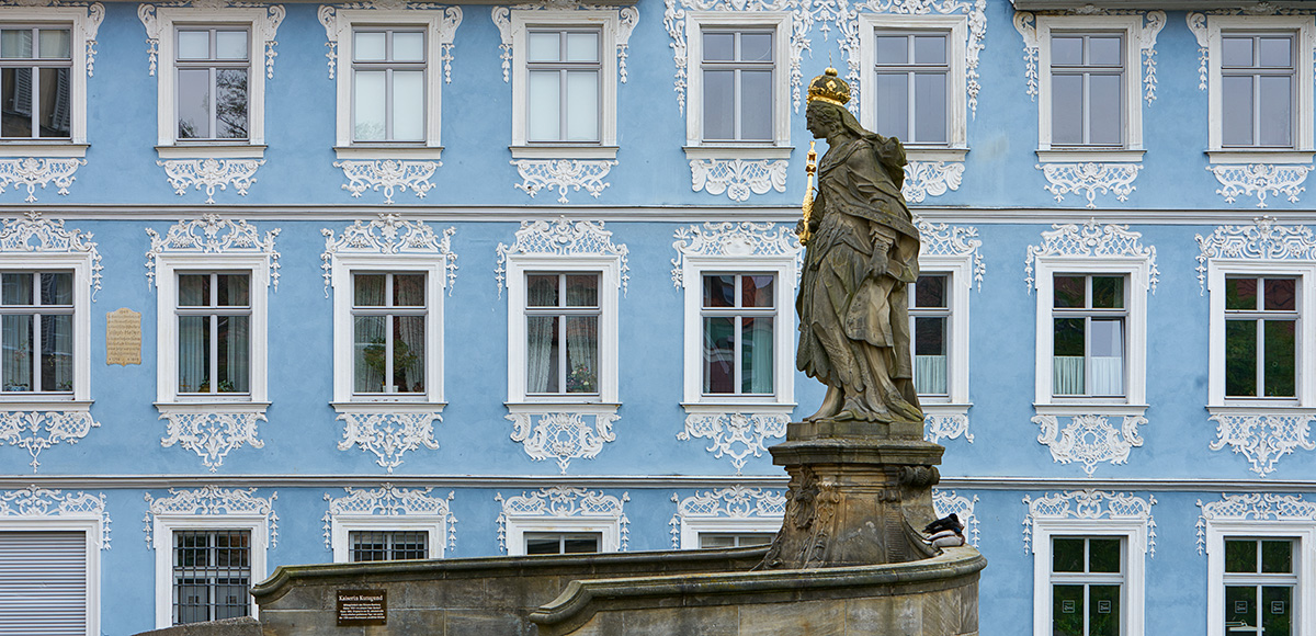 Die gleich nebenan liegende ehemalige Fischersiedlung in der Bamberger Inselstadt wird liebevoll Klein Venedig genannt. Dicht gedrängte Fachwerkbauten und winzige Gärten bestimmen das Bild dieses pittoresken Stadtteils. Entlang der Regnitz reihen sie sich in einer hübsch geschmückten Zeile aneinander und Kähne dümpeln an den Anlegestellen in den Vorgärten.