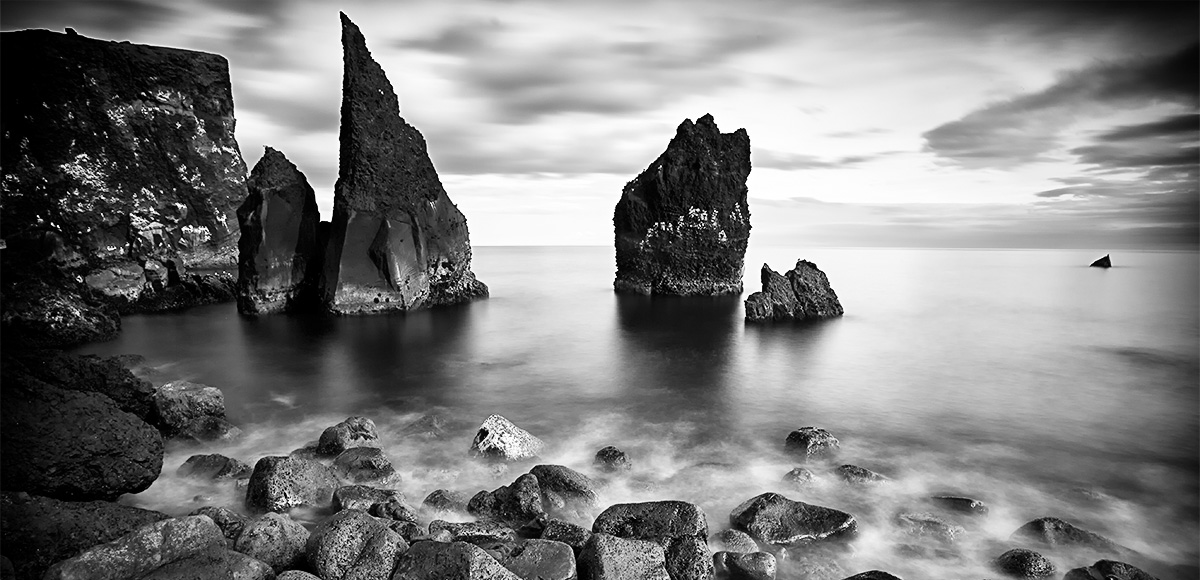 Sie laufen nicht mehr weg. Nachttrolle. Steintrolle. Gefangen sind sie. Steingeworden, weil Sonne gesehen. Zu viel Spiel, zu viel Flausen im Kopf. Zu viel Wagnis. Tief sind die Islandströmungen, sie lassen sich nicht durchwaten. Die rettende Uferhöhle bleibt ewig unerreicht. Unerreichbar weit …, obwohl so nah …