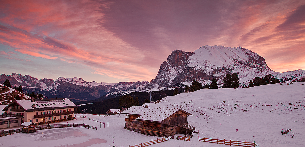Wir verbrachten die Weihnachtstage auf der Seiser-Alm in Südtirol. Die Mahlknecht-Hütte, unser Ausgangspunkt für Schneeschuhtouren, liegt auf über 2.000 m und bescherte uns so herrlichen Pulverschnee. Ein Highlight in den schneearmen Tagen rund um Weihnachten. Außerdem war bestes Wetter und wunderbare Morgen- und Abendstimmungen ließen unsere Fotografenherzen höher schlagen. Nochmals DANKE ans Team der Mahlknecht-Hütte, die unsere Urlaubstage genussvoll begleiteten. Wir freuen uns schon auf´s nächste Mal! Besonders gefreut hat uns die Verwendung unseres Bildes „Almhütten in einer Vollmondnacht vor dem Plattkofel“ für den großformatigen Druck auf einer Holzplatte. Ein echter Hingucker.