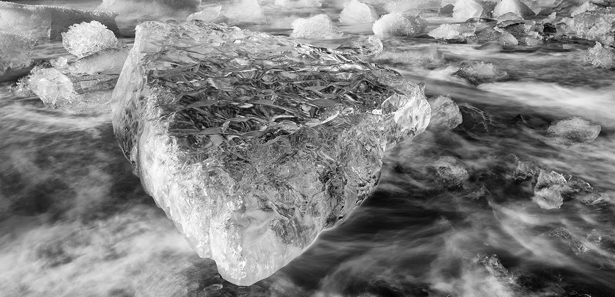 Es ist drei Uhr früh, als das helle Licht des isländischen Sommers uns nicht weiterschlafen lässt. Strandwanderung mit Kamera ist angesagt. Die frische salzige Luft durchströmt die Bucht. Die Brise lässt das seichte Wasser die steinbedeckte Küste überfluten bevor es sich zurückzieht und zur neuen Welle auftürmt. Wir wohnen dem Schauspiel Meter für Meter gedankenverloren bei. Doch unsere Sinne signalisieren uns: Da etwas weiter vorne, da ist das Spiel der Elemente anders als hier. Die einschläfernde Monotonie unserer Schritte neben dem Wellenspiel des Meeres weicht augenblicklich der aufkeimenden Neugier. Die Augen weiten sich, die Ohren werden plötzlich hellhörig und die Tritte mühelos schneller. Jede Sekunde scheint jetzt so kostbar … Ins Plätschern mischt sich leises Klirren und die sanften Wellen neben uns tragen die ersten Eisbrocken an uns vorbei. Jökulis sagt man hier dazu. Gletschereisstücke. Fragile Unikate auf eiskalter Zeitreise. Ohne Eile, ohne Verweile.