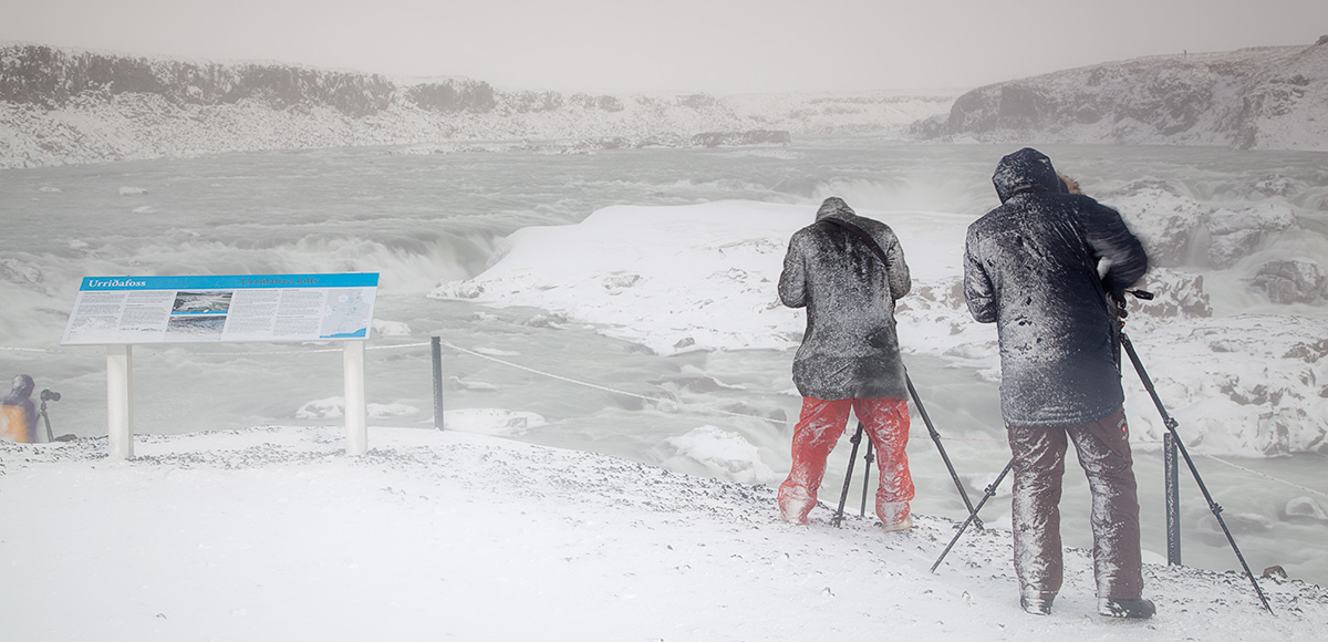 Bei der langen Fahrt in den Norden war der Goðafoss eine willkommene Abwechslung. Der hufeisenförmige Wasserfall präsentierte sich mit bizarren Eiszapfen.